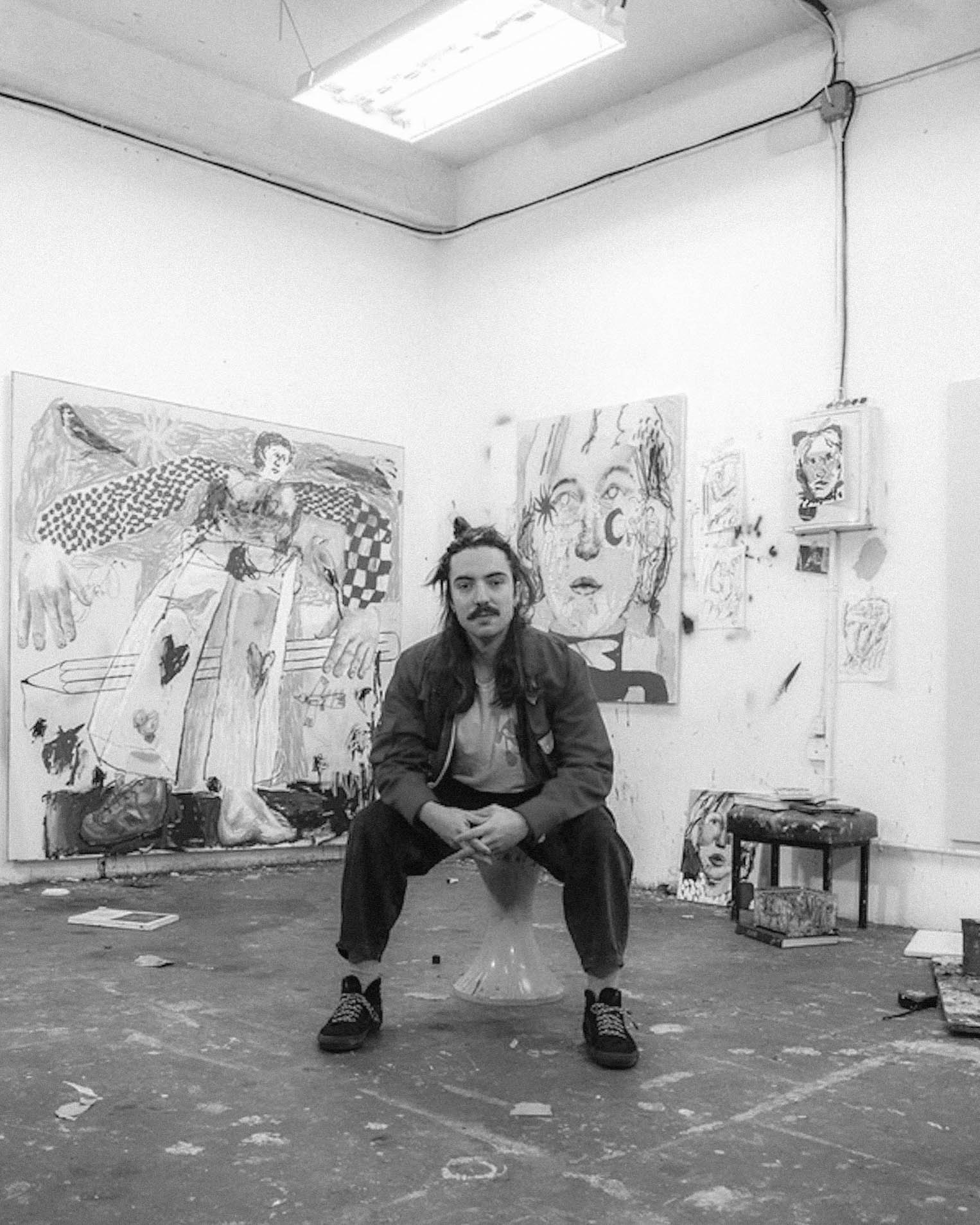 Manu García creates paintings and installations that reflect on identity, emotional memory, and the aesthetics of contemporary visual culture. A graduate of the University of Salamanca, García blends traditional painting techniques with digital aesthetics, using spray paint, stencils, and gestural abstraction to construct layered compositions that echo the language of the street and the screen.